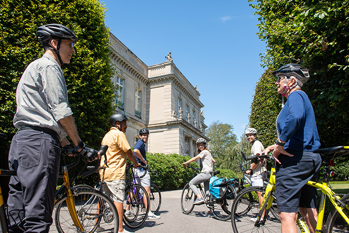 The Preservation Society of Newport County is a proud supporter of Bike Newport and the “Get There by Bike” initiative. We encourage you to bicycle to the Newport Mansions. We have secure bicycle parking at the following properties: The Breakers, Marble House, The Elms, Chateau-sur-Mer, and coming soon at Rosecliff. More information on bicycle parking and helpful tips can be found here: Bike to Newport Mansions – Bike Newport